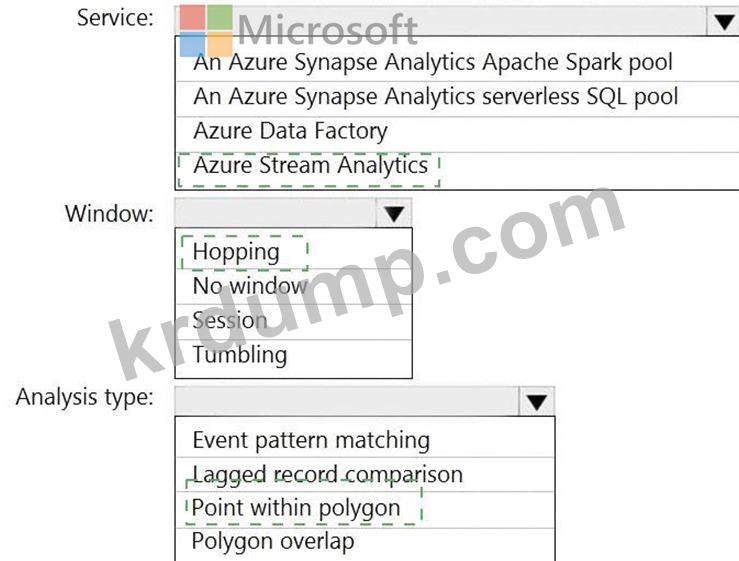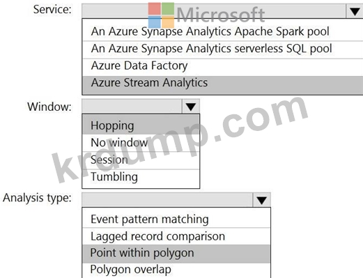 당신은 500대의 차량을 위한 모니터링 솔루션을 설계하고 있습니다. 각 차량에는 1분에 한 번씩 Azure 이벤트 허브에 데이터를 보내는 GPS 추적 장치가 있습니다.