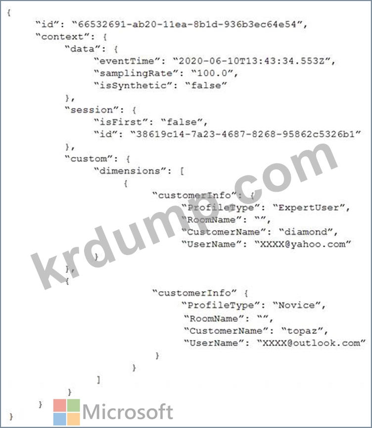 다음 형식의 JSON 형식 파일이 포함된 Azure Data Lake Storage Gen2 컨테이너가 있습니다.