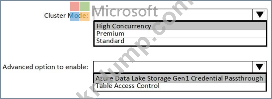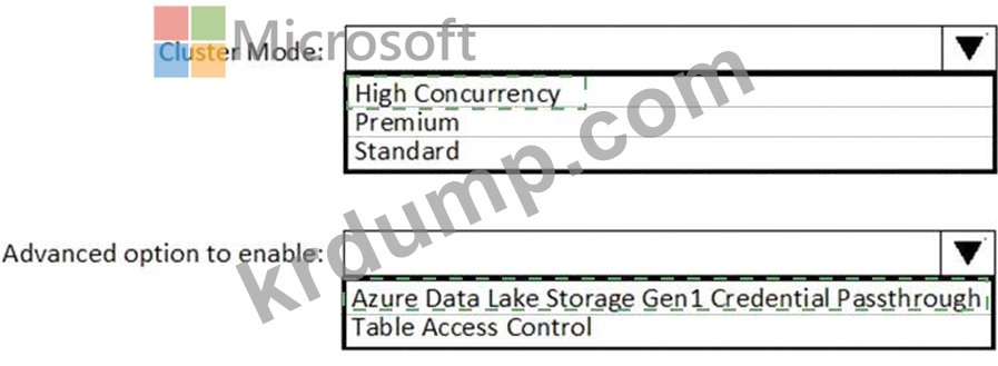 Azure AD(Azure Active Directory) 통합을 사용하여 Azure Data Lake Storage Gen2에 자동으로 연결하는 Azure Databricks 클러스터를 구현해야 합니다.