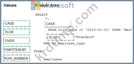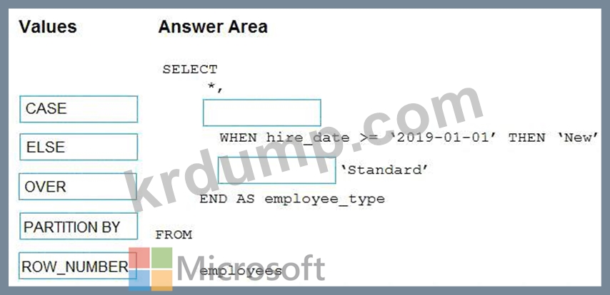 Transact-SQL 문을 어떻게 완성해야 합니까? 응답하려면 적절한 값을 올바른 대상으로 드래그하십시오. 각 값은 한 번, 두 번 이상 또는 전혀 사용되지 않을 수 있습니다. 콘텐츠를 보려면 창 사이의 분할 막대를 드래그하거나 스크롤해야 할 수 있습니다.