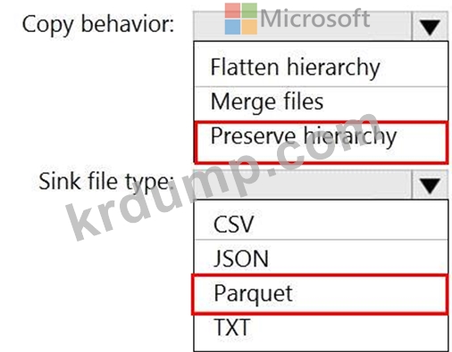 Data Factory 복사 작업을 어떻게 구성해야 합니까? 대답하려면 대답 영역에서 적절한 옵션을 선택하십시오.