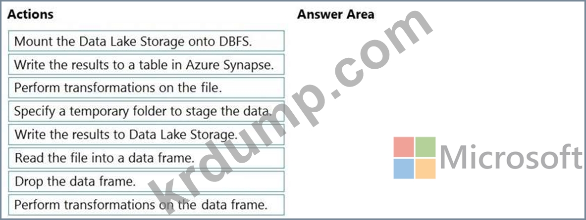 Azure Databricks를 사용하여 JSON 파일에서 Azure Synapse Analytics 테이블로 데이터를 복사해야 합니다. FirstName 및 LastName 값을 연결하는 새 열을 만들어야 합니다.