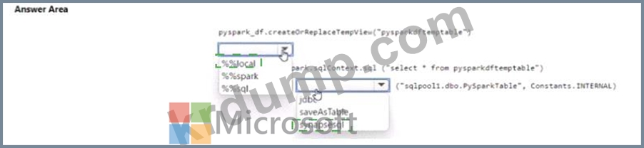 PySpark 노트북을 사용하여 SQLPooM의 탭에 pyspark_df의 내용을 작성해야 합니다.