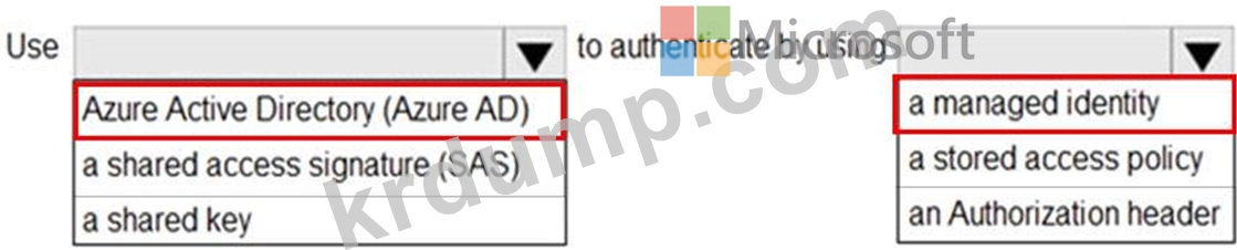 데이터 팩터리의 스토리지 계정에 대한 액세스를 어떻게 구성해야 합니까? 대답하려면 대답 영역에서 적절한 옵션을 선택하십시오.