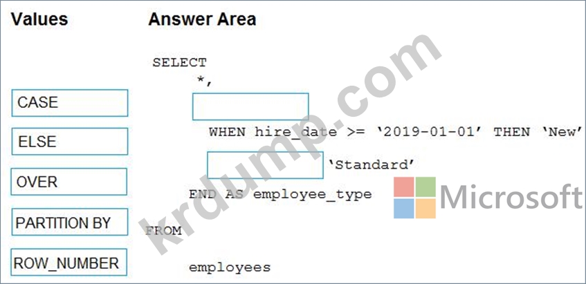 Transact-SQL 문을 어떻게 완성해야 합니까? 응답하려면 적절한 값을 올바른 대상으로 드래그하십시오. 각 값은 한 번, 두 번 이상 사용되거나 전혀 사용되지 않을 수 있습니다. 콘텐츠를 보려면 창 사이의 분할 막대를 끌거나 스크롤해야 할 수 있습니다.