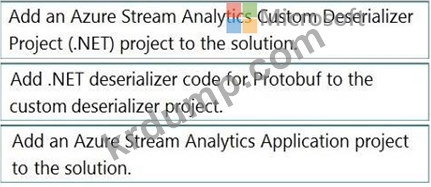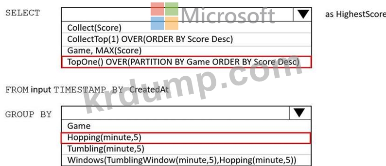 Stream Analytics 쿼리를 어떻게 완료해야 합니까? 대답하려면 대답에서 적절한 옵션을 선택하십시오.