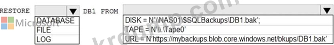Transact-SQL을 사용하여 DB1이라는 데이터베이스를 복원해야 합니다.