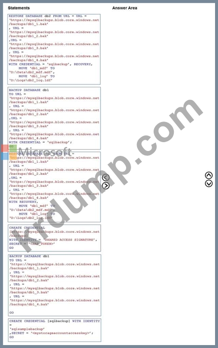 db1을 mysqlbackups에 백업한 다음 백업을 SQL1에서 호스팅되는 db2라는 새 데이터베이스로 복원해야 합니다. 솔루션은 db1이 스트라이프 세트에 백업되었는지 확인해야 합니다.