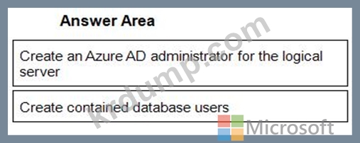 SERVER1 데이터베이스에 대한 사용자 인증을 구성해야 합니다. 솔루션은 보안 및 규정 준수 요구 사항을 충족해야 합니다.