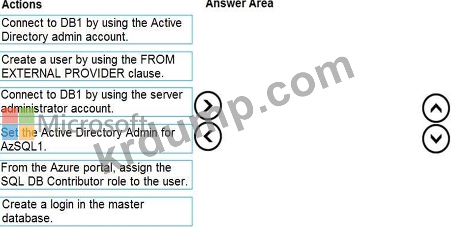 Azure AD(Azure Active Directory)를 사용할 DB1에 포함된 데이터베이스 사용자를 만들어야 합니다.