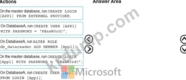 App1이라는 새 사용자를 DatabaseA에 추가하고 App1 db_datacenter 권한을 부여할 계획입니다. App1은 SQL Server 인증을 사용합니다.