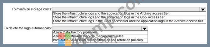 다음 표와 같이 로그를 저장하는 account1이라는 Azure Data Lake Storage Gen2 계정이 있습니다.