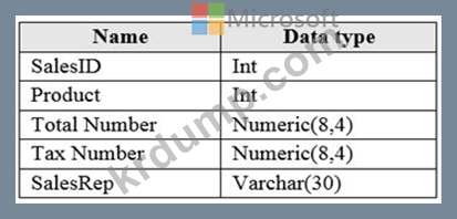 factSales라는 테이블이 포함된 Azure SQL 데이터베이스가 있습니다. FactSales에는 다음 표에 표시된 열이 포함되어 있습니다.