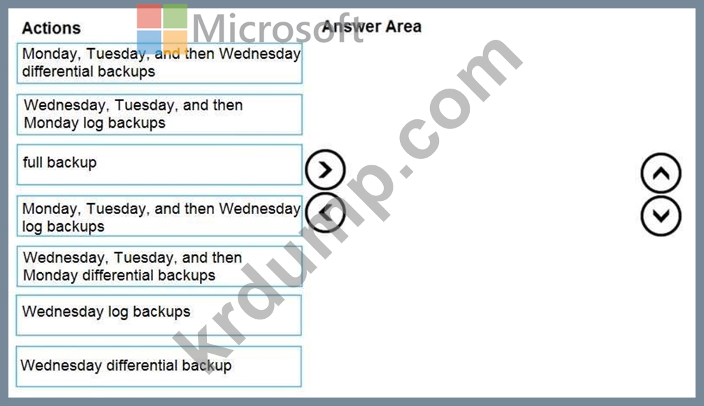 어떤 세 가지 백업을 순서대로 복원해야 합니까? 대답하려면 목록에서 적절한 백업을 이동하십시오.