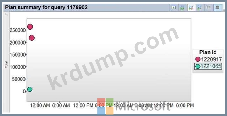 다음 전시와 같이 쿼리 1178902의 각 실행 기간을 밀리초 단위로 보여주는 계획 요약을 봅니다.