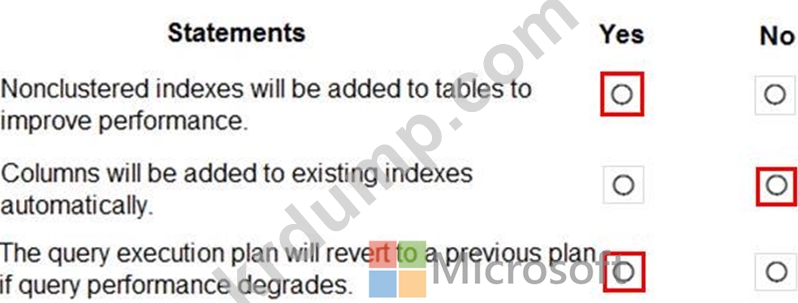 DB1이라는 Azure SQL 데이터베이스가 있습니다. DB1의 자동 튜닝 옵션은 다음 그림과 같이 구성됩니다.