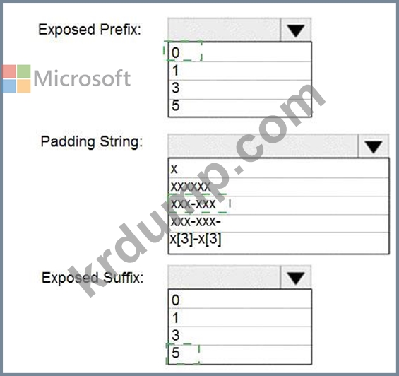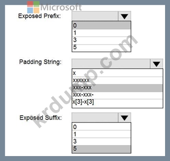 Customer_Phone 열에 대한 동적 데이터 마스크를 구현할 계획입니다. 마스크는 다음 요구 사항을 충족해야 합니다.