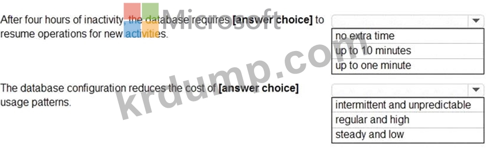 드롭다운 메뉴를 사용하여 그래픽에 표시된 정보를 기반으로 각 문항을 완성하는 답변 선택을 선택하세요.