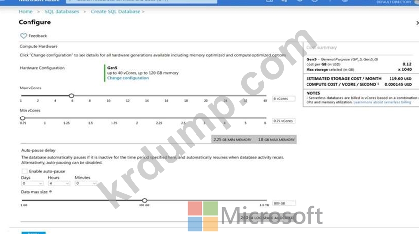 다음 그림과 같이 Azure Portal에서 Azure SQL 데이터베이스를 프로비저닝하고 있습니다.