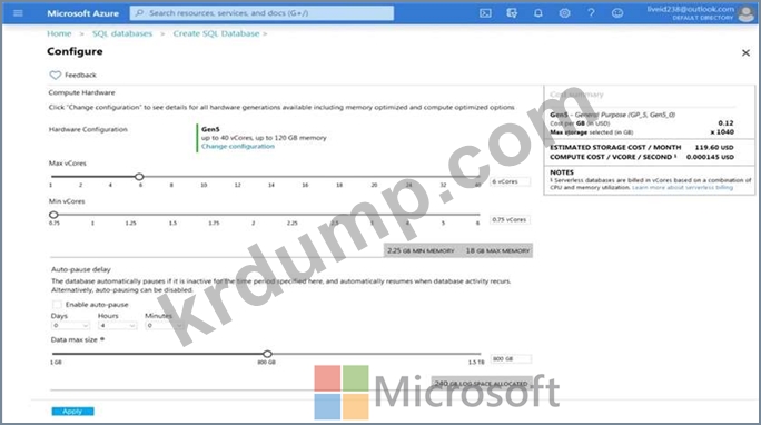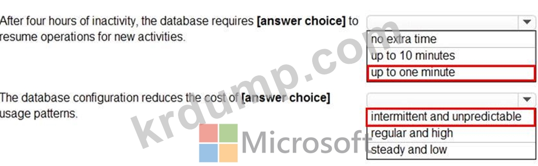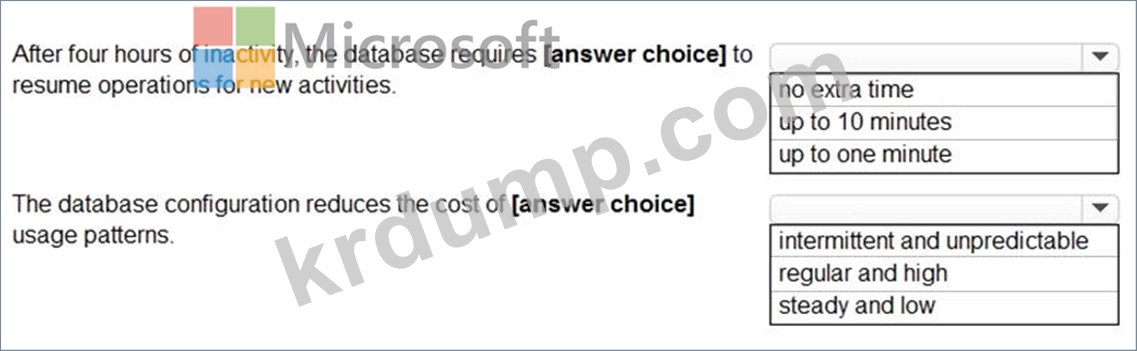 Azure로 마이그레이션한 후 ManufacturingSQLDb1에 대한 구성을 권장해야 합니다. 솔루션은 비즈니스 요구 사항을 충족해야 합니다.