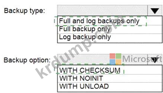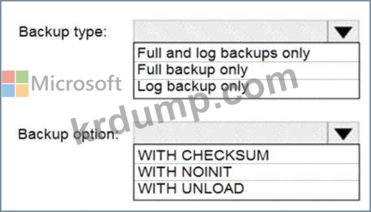 DB1 백업을 어떻게 구성해야 할까요? 답변 영역에서 적절한 옵션을 선택하세요.