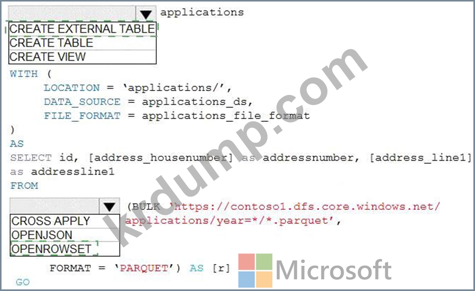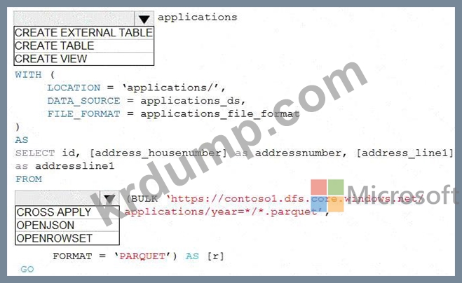 Transact-SQL 문을 어떻게 완성해야 할까요? 답하려면 답변 영역에서 적절한 옵션을 선택하세요.