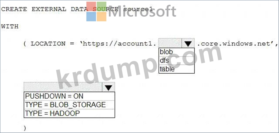 Pool1이라는 Azure Synapse Analytics 전용 SQL 풀과 Account1이라는 Azure Data Lake Storage Gen2 계정이 있습니다.