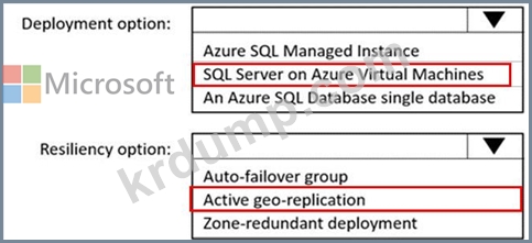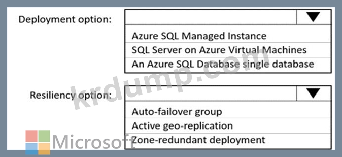 다음 요구 사항을 충족하는 배포 및 복원력 옵션을 식별해야 합니다.