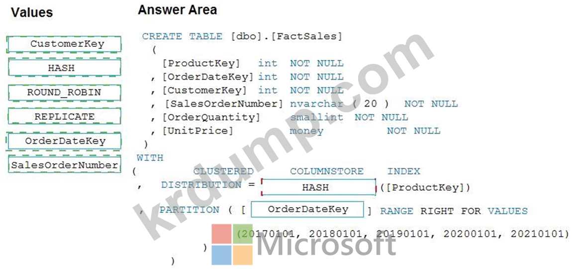 데이터가 여러 파티션에 균등하게 분산되도록 해야 합니다. 솔루션은 오래된 데이터를 삭제하는 데 걸리는 시간을 최소화해야 합니다.