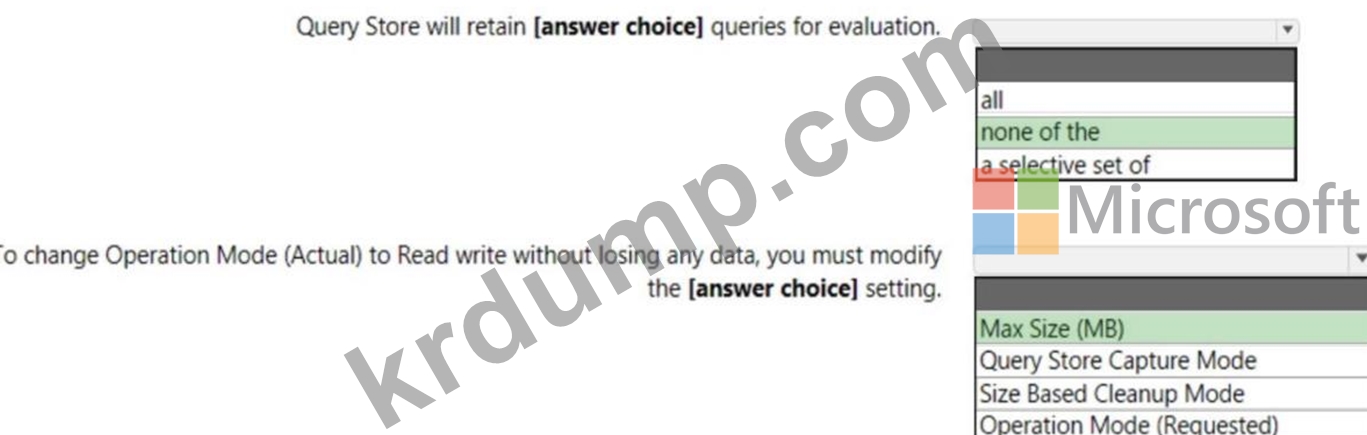 Azure Virtual Machines 인스턴스의 SQL Server에 데이터베이스가 있습니다. 데이터베이스의 쿼리 저장소의 현재 상태는 다음 그림과 같습니다.