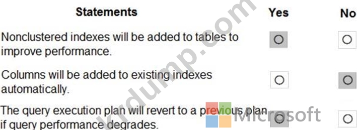 DB1이라는 Azure SQL 데이터베이스가 있습니다. DB1의 자동 튜닝 옵션은 다음 그림과 같이 구성되어 있습니다.