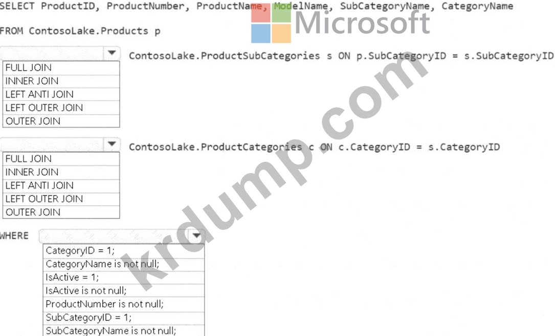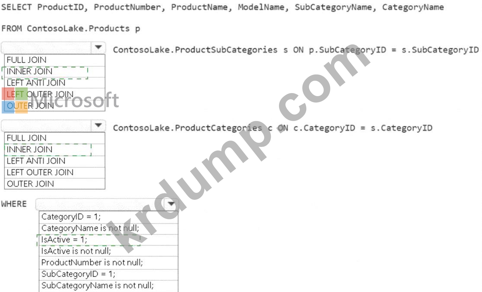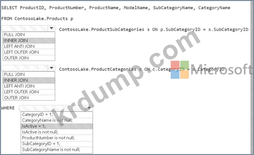Workspace1이라는 Fabric 작업 공간이 있고, 이 작업 공간에는 Lakehouse1이라는 레이크하우스가 있습니다. Lakehouse1에는 다음 테이블이 있습니다.