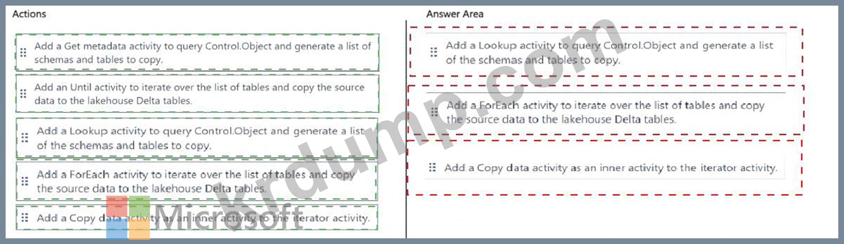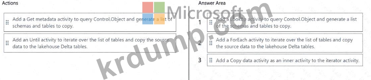 Fabric 데이터 파이프라인을 사용하여 데이터 로딩 패턴을 구축하고 있습니다. 소스는 25개의 테이블이 포함된 Azure SQL 데이터베이스이고, 대상은 레이크하우스입니다.