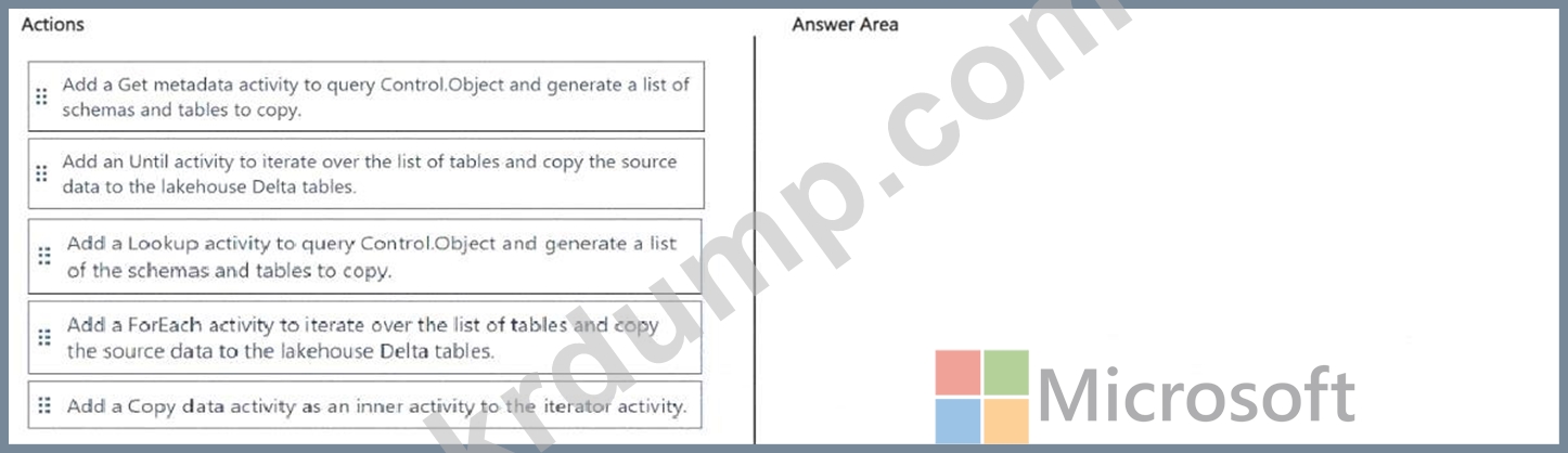 변환을 적용하지 않고 Lakehouse1에 데이터를 수집해야 합니다. 솔루션은 다음 요구 사항을 충족해야 합니다. 새 파일이 추가되면 프로세스를 트리거합니다.