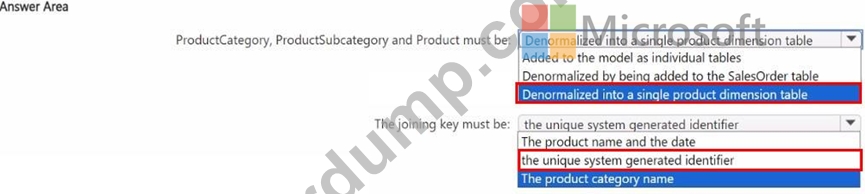 DW1에 스타 스키마를 구현해야 합니다. 솔루션은 개발 노력을 최소화해야 합니다.