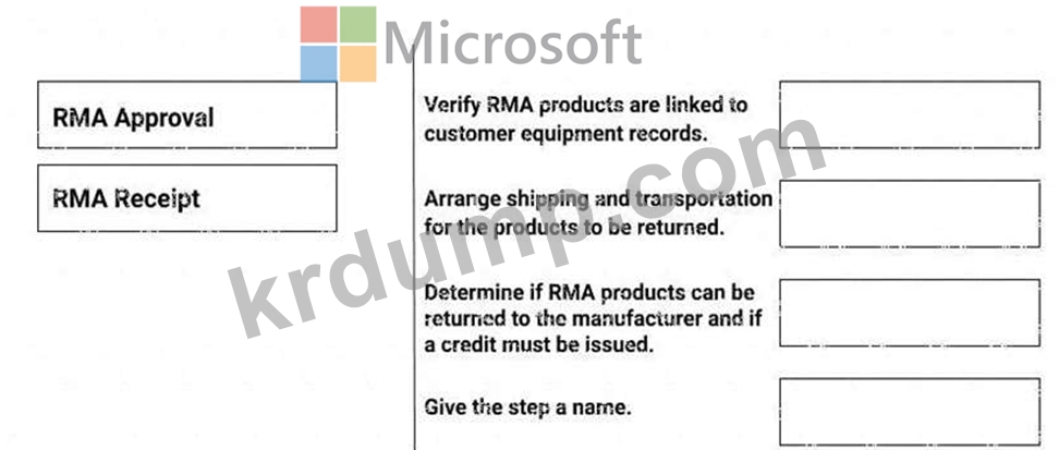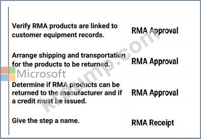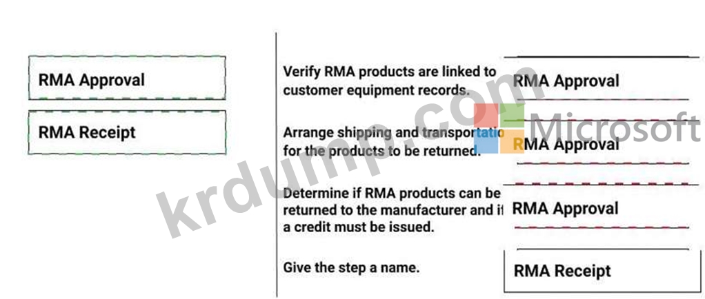 RMA 승인과 관련된 단계와 RMA 영수증과 관련된 단계는 무엇입니까? 응답하려면 RMA 승인 또는 RMA 영수증을 적절한 단계로 드래그하십시오. RMA 승인 및 RMA 영수증은 한 번, 두 번 이상 또는 한 번에 사용할 수 없습니다. 콘텐츠를 보려면 창 사이의 분할 막대를 드래그하거나 스크롤해야 할 수 있습니다.
