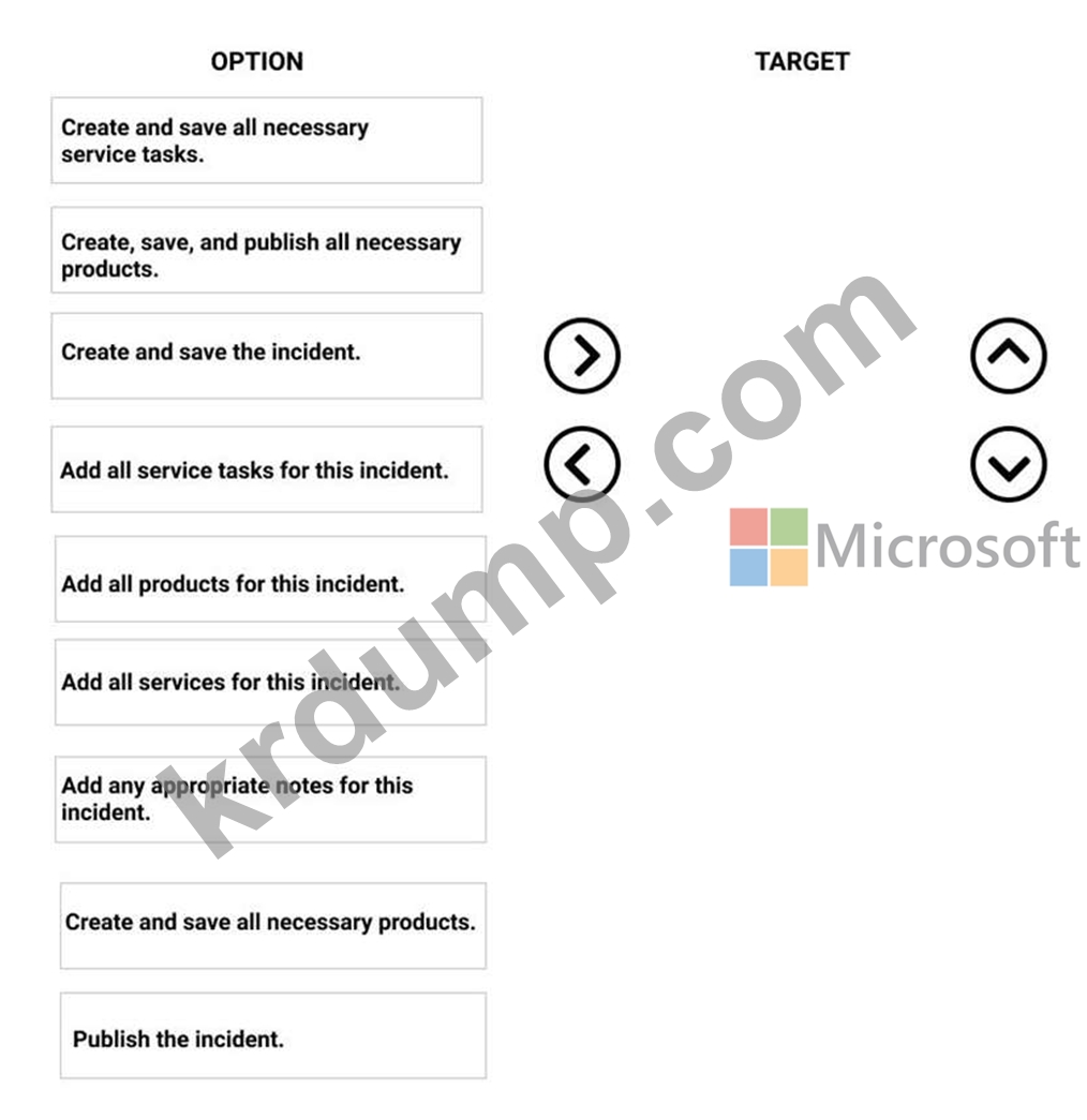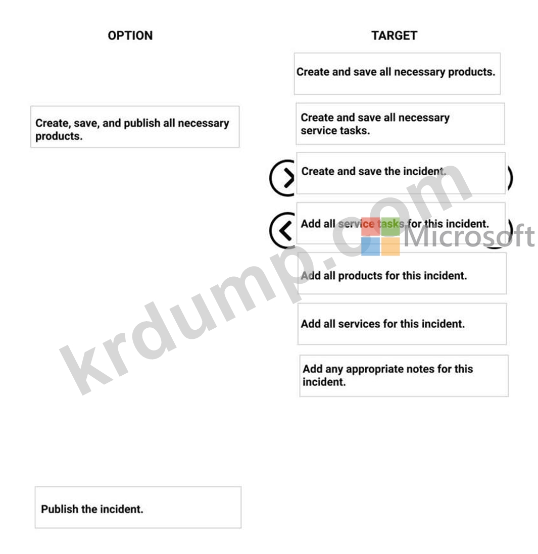 이러한 서비스를 추가하려면 어떤 7가지 작업을 순서대로 수행해야 합니까? 응답하려면 조치 목록에서 해당 조치를 응답 영역으로 이동하고 올바른 순서로 정렬하십시오.