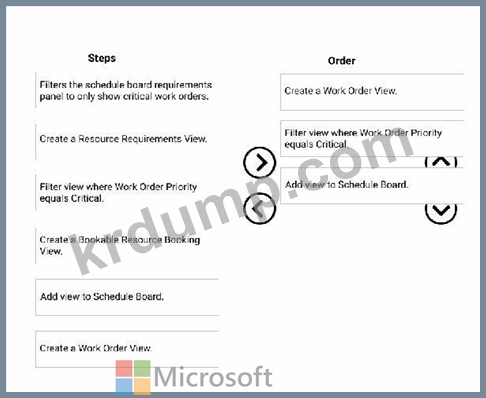 귀하는 Dynamics 365 for Field Service 관리자입니다. 새 일정 게시판 보기에 대한 요구 사항에 대해 회사 일정 팀과 협력하고 있습니다.