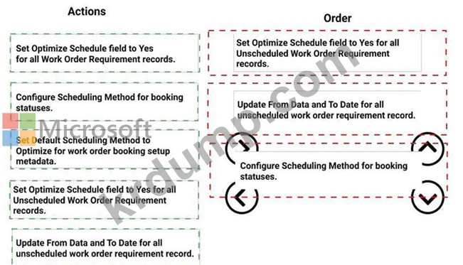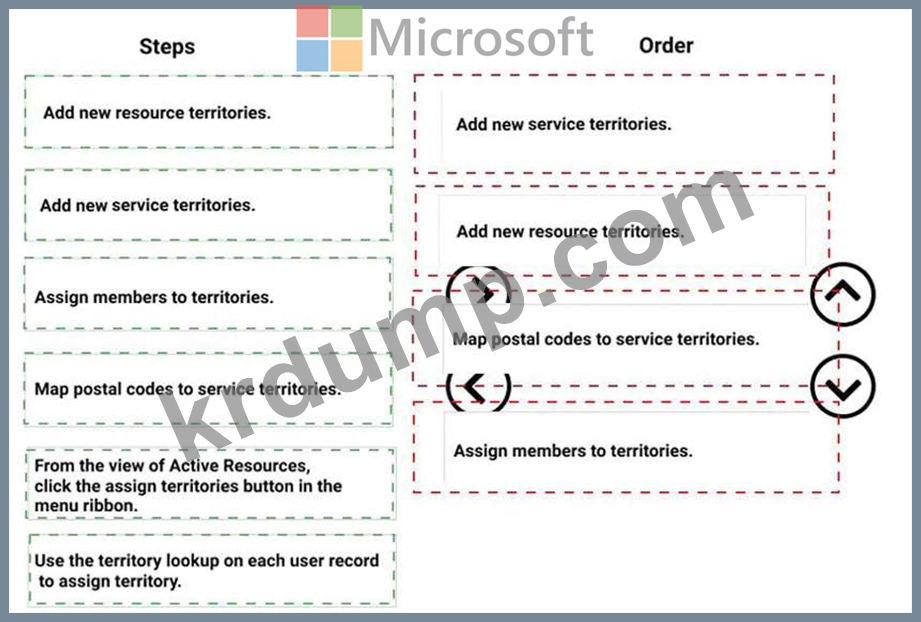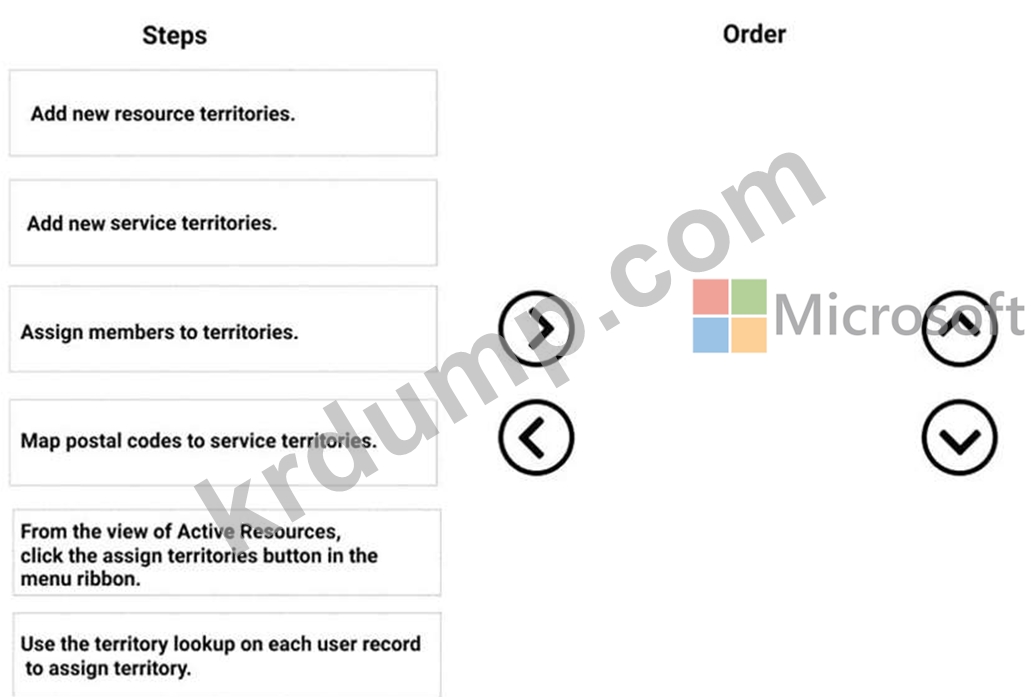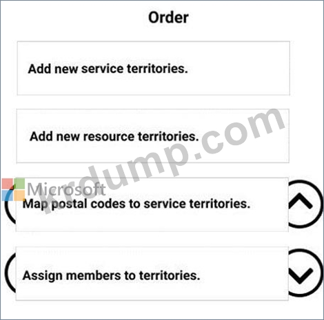 작업 주문이 생성될 때 올바른 영역에 자동으로 매핑되도록 하려면 어떤 4단계를 순서대로 구성해야 합니까? 답변하려면 작업 목록에서 해당 작업을 답변 영역으로 이동하고 올바른 순서로 정렬합니다.