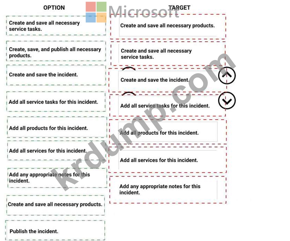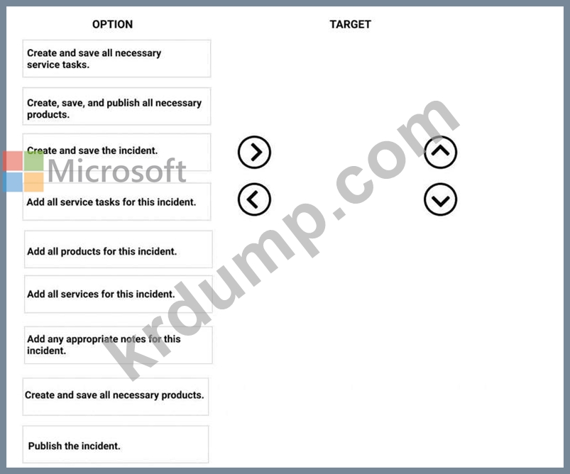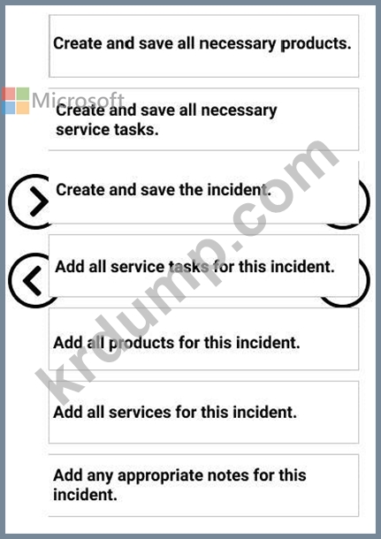 이러한 서비스를 추가하려면 어떤 7가지 작업을 순서대로 수행해야 합니까? 응답하려면 조치 목록에서 해당 조치를 응답 영역으로 이동하고 올바른 순서로 정렬하십시오.