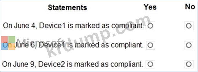 6월 1일에 다음 표와 같이 Intune에 Windows 10 디바이스를 등록합니다.