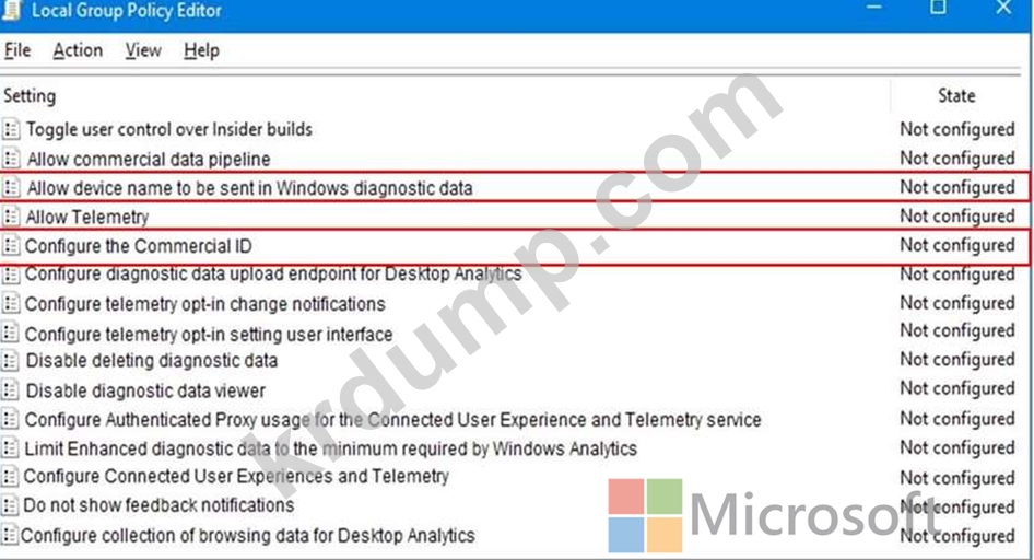 어떤 두 가지 그룹 정책 설정을 구성해야 합니까? 응답하려면 응답 영역에서 적절한 설정을 선택하십시오.