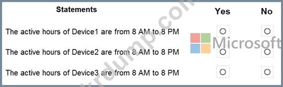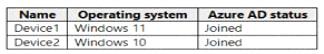 다음 표와 같이 Microsoft Intune에 등록된 Windows 10 장치가 있습니다.