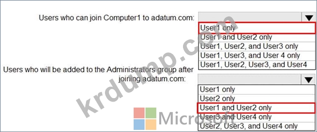 Computer1을 adatum.com에 가입할 수 있는 사용자와 adatum.com에 가입한 후 Administrators 그룹에 추가될 사용자를 식별해야 합니다.