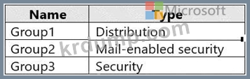 다음 표에 표시된 그룹이 포함된 Microsoft 365 테넌트가 있습니다.