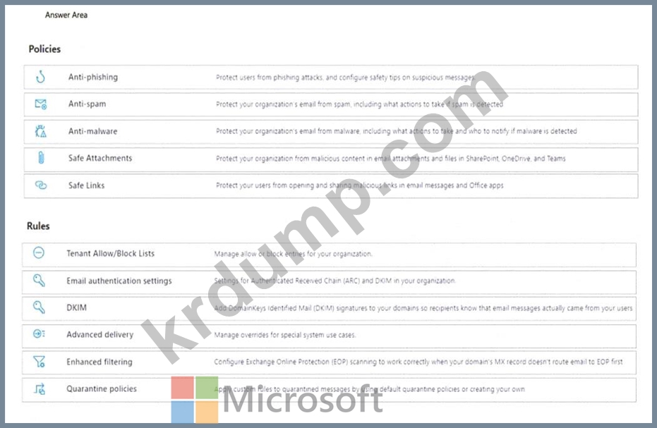 Microsoft Defender for Office 365에서 어떤 두 가지 위협 정책을 구성해야 합니까? 대답하려면 답변 영역에서 적절한 위협 정책을 선택하세요.