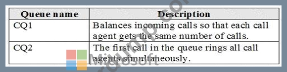 다음 표에 표시된 통화 대기열을 생성해야 합니다.