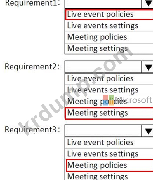 다음 표에 나와 있는 요구 사항을 충족하도록 Microsoft Teams를 구성해야 합니다.