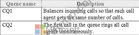 다음 표에 표시된 통화 대기열을 생성해야 합니다.