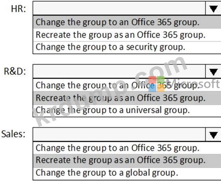 각 그룹에 무엇을 해야 합니까? 응답하려면 응답 영역에서 적절한 옵션을 선택하십시오.